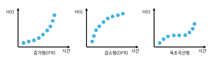 3)일정 값을 유지하는 형태(Constant failure rate)의 세 유형으로 나뉨