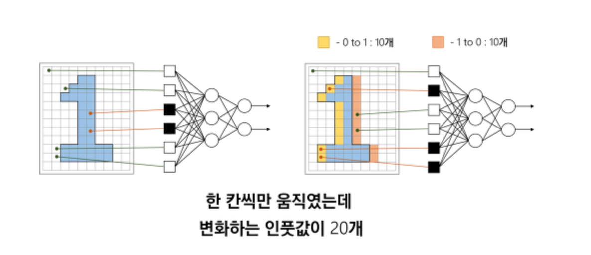 MLP: 이미지나 영상처리에는 부적절: 한 칸씩 움직였는데 변화값이 20개