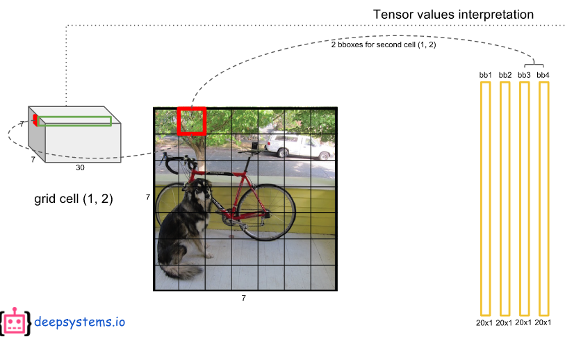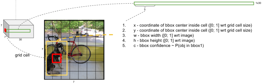 - 이미지를 7x7 크기의 그리드 셀로 나눔 (총 49개 셀)