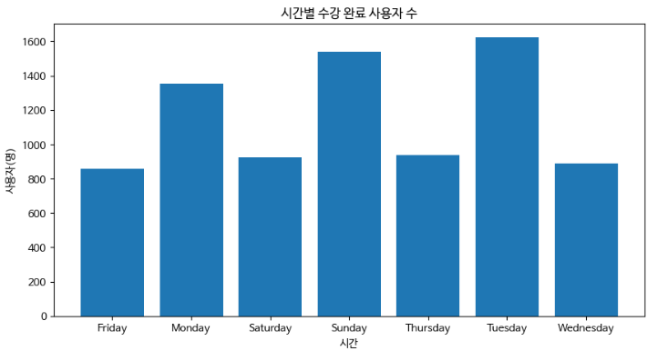이렇게 되면 요일별 몇시쯤에 종료가 가장많이 되었는지 알 수 있겠죠.