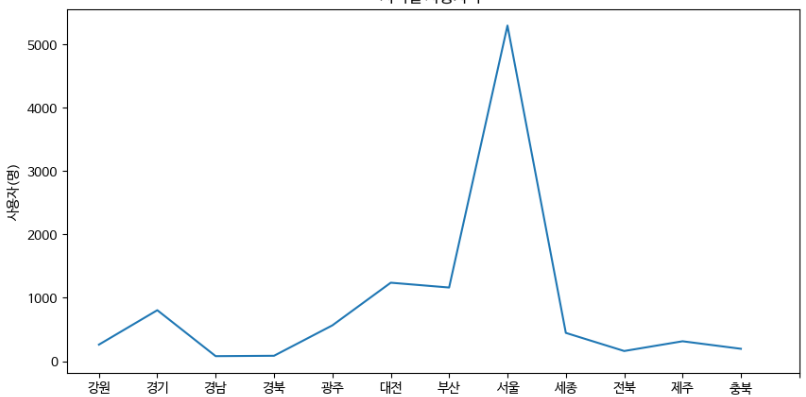 이런 그래프가 나오게 됩니다. 지역별 사용자가 어디가 많은지 알 수 있네요