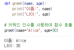 이렇게 키워드를 지정해 줄 수있게 함수를 만들면 순서가 바뀌어도 정해진 위치에 들어가 출력되게 됩니다.