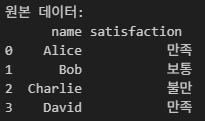 'satisfaction': ['만족', '보통', '불만', '만족']