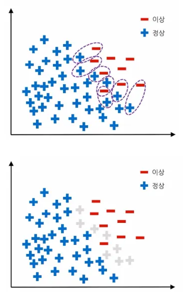 데이터 불균형 : 정상 범주의 관측치 수와 이상 범주의 관측치 수가 현저히 차이나는 데이터