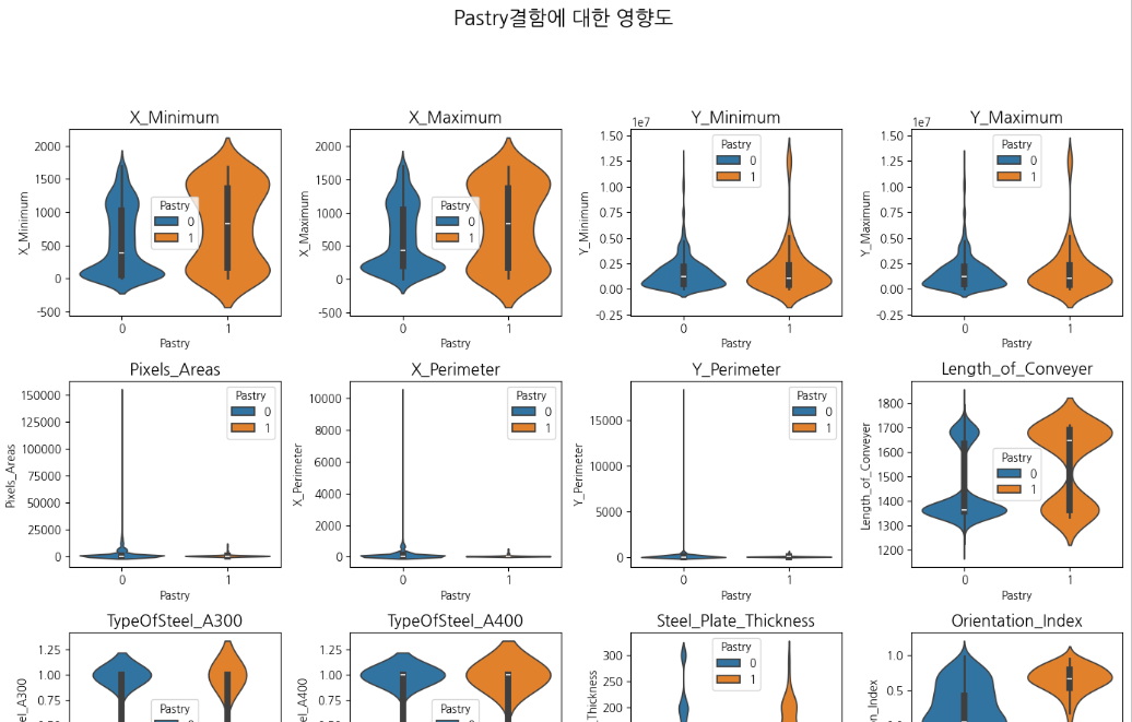 우선 결함과 정말 연관되어있는 이상치인지 violin plot을 그려보라고 해주셨습니다.