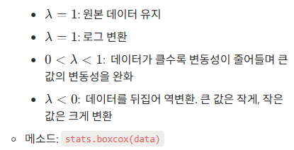 3-4) Box-Cox 변환 : 분산을 안정화 할 뿐만 아니라 데이터의 정규성을 보장하는 데도 유용