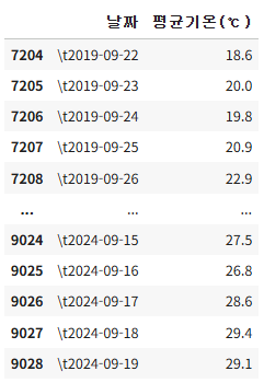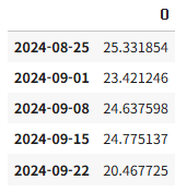 - Predictions: Prophet 모델이 예측한 값(기온)을 나타냅니다. 이 선은 Prophet이 학습한 데이터 패턴(계절성, 추세)을 바탕으로 미래 기온을 예측한 결과입니다.