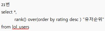 | limit | 컬럼에서 가져오고 싶은 행의 갯수를 지정해줍니다. 예) limit 1 이면 위 1개의 행만 남게됩니다. |