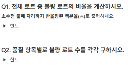 처음에 실전문제 풀때는 합격률인줄 알았는데 불량률 이더라고요 ㅠㅠ